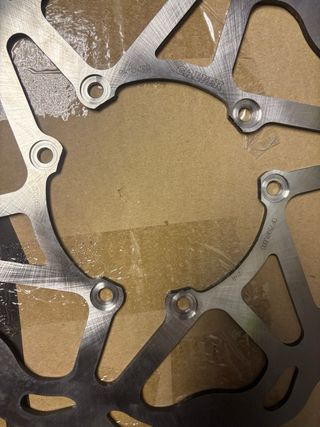 Disco de freno TRASERO comprado para Honda CR250 02-07; 240mm SIRVE PARA MUCHAS OTRAS CR CRF ( me podéis consultar ) - Nuevo a estrenar estilo BRAKING - Diseño ondulado para disipar calor - Acero resistente - Acabado de calidad con pintura en polvo para que no se oxide Motivo de venta, retirada de moto y hacer limpieza de piezas etc.