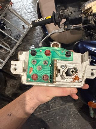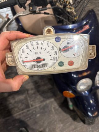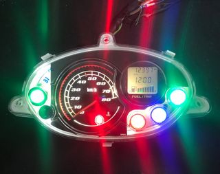 Vendo panel de instrumentos para scooter Yamaha Jog RR y R moderna. El cuadro está en muy buen estado. - Marcador completamente revisado. - Funciona correctamente el velocímetro y las luces (LED). - Válido para Yamaha Jog RR de agua y R de aire. - 12.397 KM. #M.JOG.31