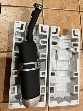 Escape sin un rasguño, de titanio con abrazadera de carbono y su tornillería. Caja y papeles originales. Pesa poquísimo y el sonido es brutal. Muy poco uso. La junta de cobre es la misma del escape original. No contesto ofertas absurdas. NO NEGOCIABLE. Gracias.