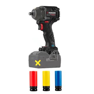 (NUEVO SIN ABRIR) Atornillador de impacto con motor sin escobillas (Brushless) inalámbrico (Sin batería ni cargador) PARKSIDE PERFORMANCE PPDSSA 20-Li A1, 20 V, 600 Nm Para el montaje de ruedas de vehículos 2 niveles de torsión preestablecidos y 2 modos seleccionables para tornillos de madera o métricos Broca de herramienta de ½" (cuadrado exterior) Revestimiento Softgrip antideslizante Estuche de almacenamiento Compatible con todas las baterías de la serie PARKSIDE X 20V Team Accesorios: 3 vasos (unidad de ½", 17 / 19 / 21 mm)
