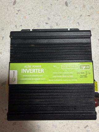 Inversor de corriente AC/DC de 500W. - Voltaje de entrada: 12V DC. - Voltaje de salida: 230V AC. - Potencia pico: 1000W (0.5 seg). - Tecnología SOFT-START. - Certificación CE y RoHS.