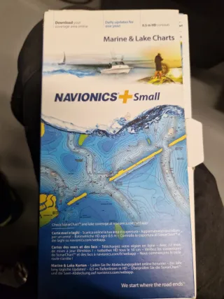 Cartas náuticas Navionics+ Small para Marine & Lake. - Descarga tu área de cobertura online. - Actualizaciones diarias por un año. - Contornos HD de 0.5 m. - Cobertura de SonarChart™ y lagos disponible en navionics.com/webapp.