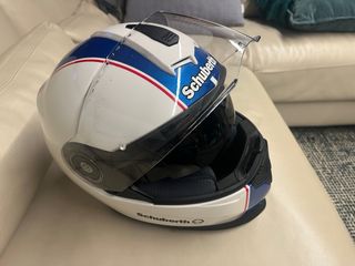 Casco Schuberth S2 en buen estado debido al poco uso - Talla M. - Diseño blanco con detalles en azul y rojo.
