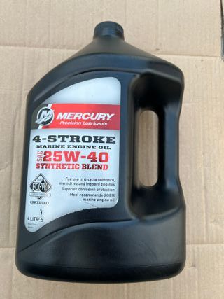 Garrafa de aceite de motor Mercury 4-Stroke sintético SAE 25W-40. Nuevo a estrenar
