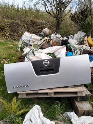 Portón trasero para Nissan Navara D40. - Color gris. - Incluye emblema NAVARA y logo NISSAN. No tengo la llave de la cerradura .tiene pequeño golpe esquina inferior izquierda pero es reparable fácilmente .