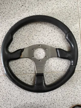 Volante deportivo Momo con signos de desgaste se puede restaurar con imprimación y luego pintar negro mate por ejemplo - Diseño clásico. - Materiales de calidad.