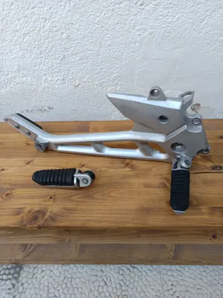 Soporte para la estribera derecha Suzuki GSR. Esta roto el anclaje de la estribera trasera. Se puede soldar y reparar sin problema.