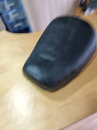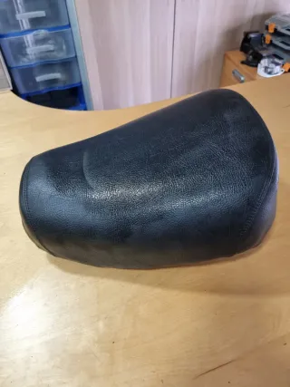 Asiento monoplaza para moto BMW serie R. Diseño deportivo y cómodo. - Tapicería de cuero negro. - Forma ergonómica. - Original. - un poco castigada la base