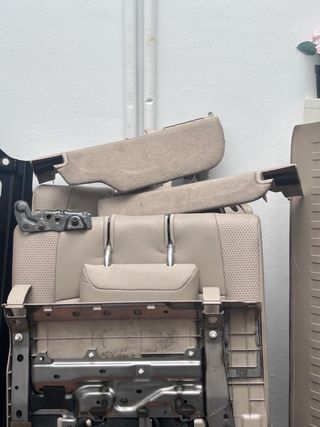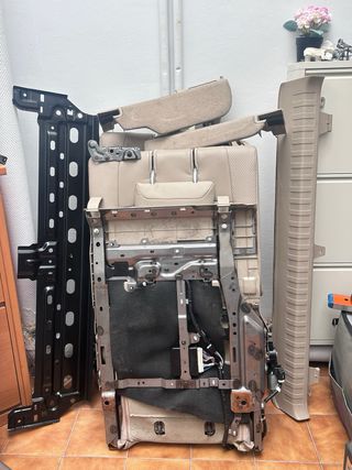 Conjunto de asientos de la tercera fila para Toyota Land Cruiser 150. - Tapicería en color beige. - Reposacabezas integrados. - Estructura metálica visible. Todos los accesorios para el montaje. En perfecto estado. Los he sacado para preparar como camper.