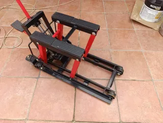 Elevador robusto para motocicletas, ideal para trabajos de mantenimiento o exhibición. Medidas en descanso y elevado en las fotos. - Construcción metálica. - Superficie antideslizante. - En muy buen estado. 35€