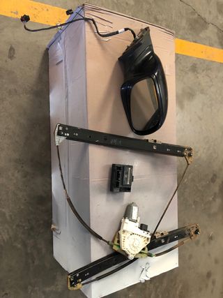 Conjunto de piezas de automóvil. - Espejo retrovisor. - Mecanismo elevalunas eléctrico. - Módulo de control eléctrico.