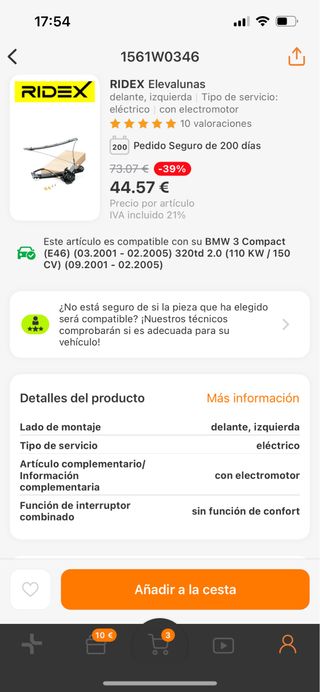 Elevalunas bmw e46 nuevo lado conductor a estrenar