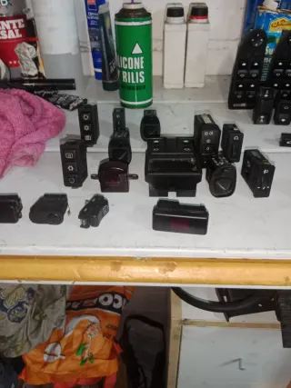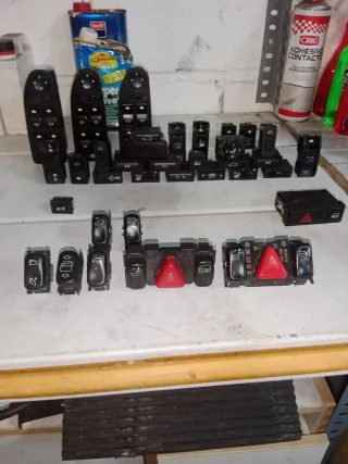 Lote de interruptores y pulsadores para vehículos Mercedes y BMW. Incluye varios modelos. - Interruptores de elevalunas. - Pulsadores de warning y otras funciones. - Botones de BMW e39,e34,E36,e46 y de mercedes w210,w208, preguntar por disponibilidad,solo los que se ven en las fotos