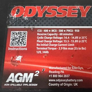Bateria Odyssey Extreme AGM Battery (PC 950) AGM² de 12V y 34Ah, diseñada para ser no derramable. Ahorro de peso grande respecto a una bateria convencional 20kg mas o menos Peso 9,2kg Se hacen envios Interesados contactar sin compromiso 658230661