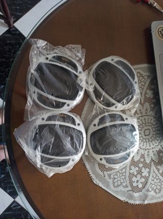 4 embellecedores / tapas altavoces coche hasta 5.5 pulgadas=15 cm, sin usar, blancos con rejilla en negro, y otros dos embellecedores / aros. Todo por 5 euros