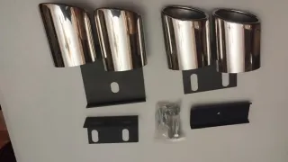 Embellecedores de escape universales de 68mm. - Nuevos. - Material: Acero inoxidable cromado. - Compatibles con marcas como VW, Audi, Seat, Skoda y BMW.