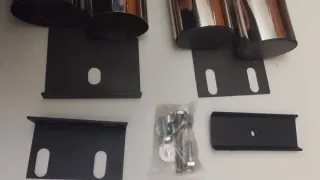 Set de dos embellecedores para tubo de escape con acabado cromado. - Diseño elegante y brillante. - Incluye soportes y tornillería para su instalación.