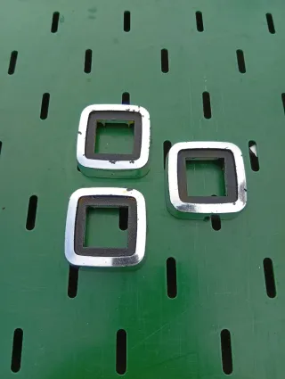 Conjunto de tres embellecedores cromados frontales contorno faros (cerquillo perfil) , para furgoneta Pegaso Sava J4. Piezas originales y nuevas. Se venden las 3 juntas. No se hace devolución