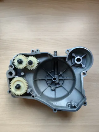 Tapa de motor del lado del embrague para Derbi Euro 3. Incluye los engranajes de plástico y la parte de la leva que se aprecia en la foto. . . . . . Palabras clave, no leer: pwk, PWK, 49, 50, 49cc, 50cc, derbi, beta, Rieju, Aprilia, sherco, rr, mrx, sm, rs, mrt, drd, senda.