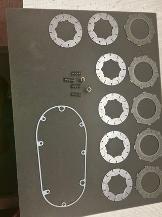 Kit de embrague para Bultaco moderno, incluye muelles reforzados. - Discos de embrague. - Separadores. - Muelles reforzados. - Tornillos y tuercas. Portes incluidos en el precioso