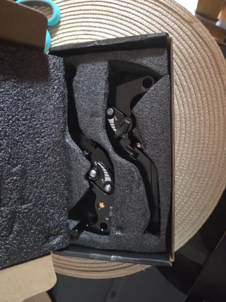 Par de palancas de freno y embrague para motocicleta en color negro. - Diseño deportivo y elegante. - Fabricadas en aluminio de alta resistencia. - Ajustables para mayor comodidad.