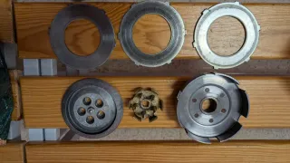 Piezas de recambio para el embrague de una Derbi Antorcha Super,motor del hoyo. Tricampeona, olímpica campeona,despiece, ciclomotor,rabasa,motor,maza,plato