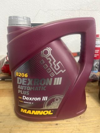 Aceite para transmisión automática Mannol Dexron III Automatic Plus. - Cumple especificaciones GM Dexron III. - Compatible con Ford Mercon V. - Cantidad: 3.5L. Envase de 4 litros al que le falta medio litro. También adecuado para caja de cambios de gas gas ec 250 y 300 evitando ruidos en el embrague