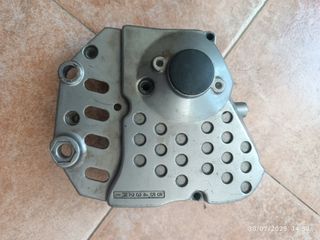 Tapa de embrague para Vespa. Pieza metálica con un diseño circular y varios orificios. - Material metálico. - Diseño circular con orificios.