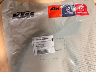 Referencia: 95802090000 Cable de embrague original KTM/Husqvarna/GasGas, referencia 95802090000. Nuevo, en su bolsa sin abrir. Compatible con varios modelos enduro y cross (EXC, SX, FE, TE). Ideal como repuesto o para llevar de emergencia en rutas.