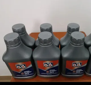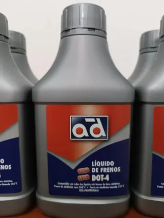 Lote de 6 botes de líquido de frenos y embrague. USO PROFESIONAL - Marca: AD. - Tipo: DOT-4. - Base sintética. - Punto de ebullición seco: 260°C. - Punto de ebullición húmedo: 155°C. *Más unidades preguntar*