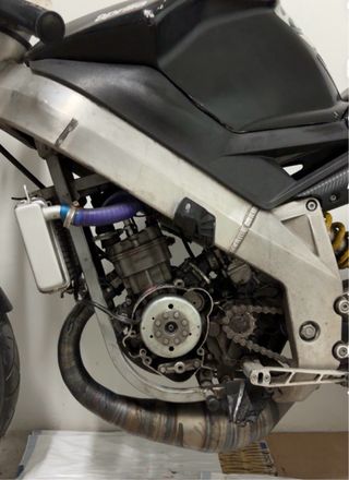 Motor Derbi Euro3 con eje. -airsal 74 con juntas recien cambiadas -cigueñal top reforzado -rodamientos cambiados -caja de laminas italki 8 petalos -embragues new freen -carburador 24 pwk y pagando algo mas se da con escape rdc 86 90 con dos salidas a la calle