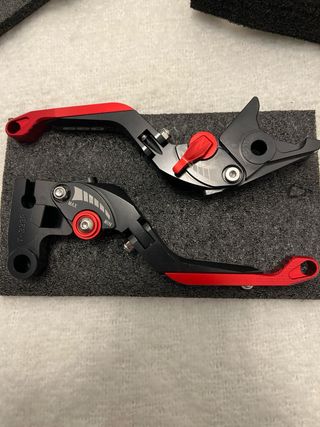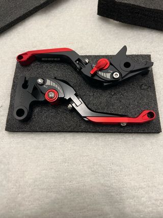 Juego de manetas de freno y embrague para motocicleta marca GDREYE. Fabricadas en aluminio CNC de alta resistencia con acabado anodizado en negro y rojo. Son ajustables para adaptar la distancia al manillar y mejorar la comodidad al conducir. Ideales para personalizar tu moto y mejorar el control de frenado y embrague. Características: • Marca: GDREYE • Material: aluminio CNC • Color: negro y rojo • Ajustables (regulación de distancia) • Alta resistencia y acabado anodizado • Incluye maneta de freno y maneta de embrague