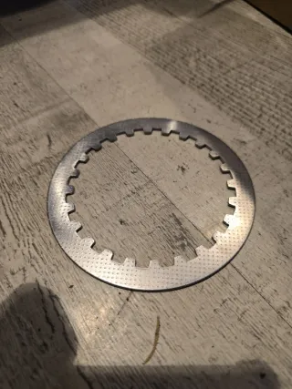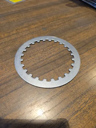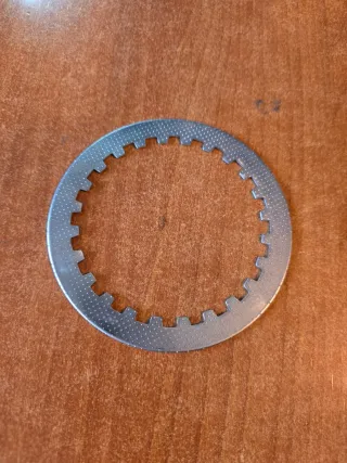Plato de embrague nuevo para Daelim VC 125 del año 1996. - Material metálico. - Diseño con perforaciones y borde dentado.