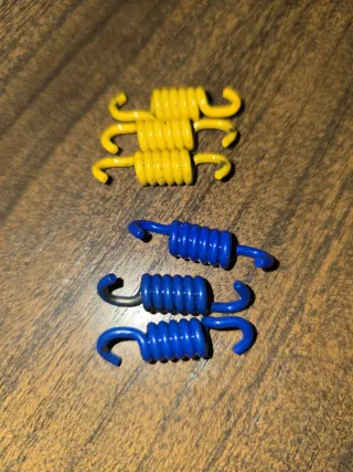 Conjunto de muelles de embrague de colores amarillo y azul. Incompleto - Tres muelles amarillos. - Tres muelles azules.