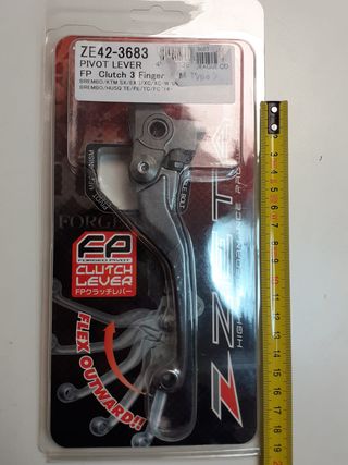 Maneta Embrague articulada, zeta, FP, (3 Dedos) CORTA REF.: ZE42-3683 BREMO / KTM SX/EXC/XC/XC-W 06- BREMO / HUSQVARNA TE/FE/TC/FC ’14- Maneta Embrague Zeta FP Maneta de embrague Zeta Pivot FP corta (3 dedos). Diseñada para ser abatible hacia delante en caso de caída. Fabricada en aluminio forjado. Terminación en titanio anodizado.