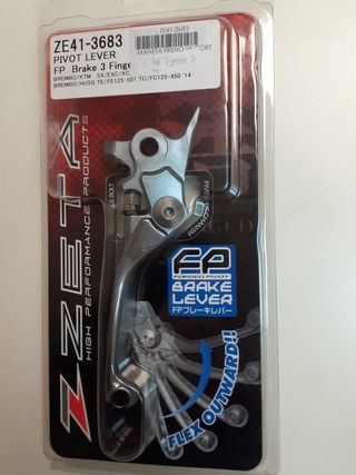 Maneta FRENO articulada, zeta, FP, (3 Dedos) CORTA ref.: ZE41-3683 BREMO / KTM SX/EXC/XC/XC-W 06- BREMO / HUSQVARNA TE/FE/TC/FC ’14- HUSQVARNA TE 150 (2017) Maneta Embrague Zeta FP Maneta de embrague Zeta Pivot FP corta (3 dedos). Diseñada para ser abatible hacia delante en caso de caída. Fabricada en aluminio forjado. Terminación en titanio anodizado.