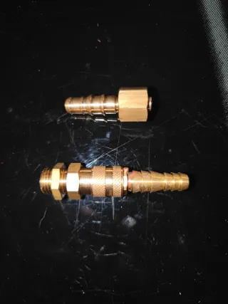 Conector para cajetín de toma de agua para furgo camper, enganche por presión a manguera o depósito. Racord enchufe rápido en dos piezas para toma de ducha externa marca Reich.