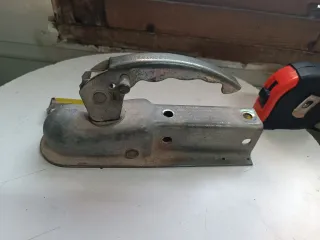 Enganche de metal para remolque. Diseñado para acoplar un remolque a un vehículo. - Material: Metal galvanizado. - Mecanismo de cierre con palanca. - Puntos de fijación para montaje.