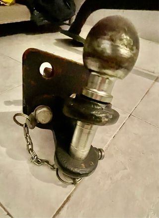 Contacto-686 476 394 / agroalfredo.es / Alfredo Sanchez. Talavera de la Reina (Toledo). Precio 30 €. SOLO QUEDA UNA BOLA. Enganche de remolque para coche, furgoneta, todorreno, pick-up, caravana o cualquier otro vehículo donde la instales. No tiene practicamente uso. Medida: 20 cms de larga x 11,5 cms de alto, 2 agujeros para su acople a 5 cms de centro a centro.