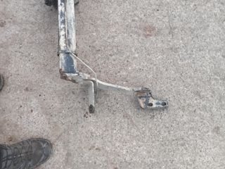 Remolque de coche en buen estado. La separación entre ejes de de tornillos es de 6 cm La altura desde el punto más bajo del enganche a la parte mas alta de la bola son 18cm Diametro de los agujeros entre 12 y 13 mm - Enganche de remolque para coche. - Pieza de color negro.p - Mide aproximadamente 30cm de largo y 18 de alto