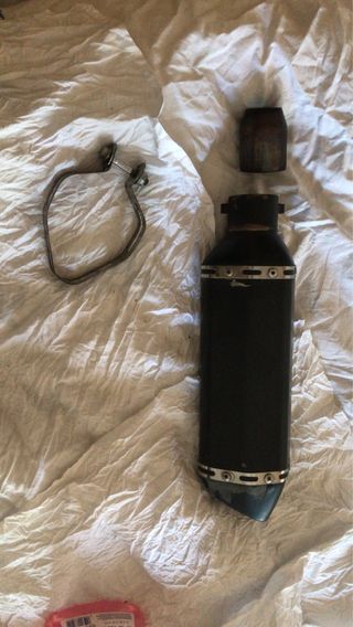 Silenciador generico de alto rendimiento en buen estado con algunas marcas de pintura de estar guardado.Sonido trueno!NO ESTA HOMOLOGADO.Incluye abrazadera con tornillo,2 muelles y una boquilla de reduccion o de alargo.Estaba montado en una Honda CB500 del año 2001.Tenia 2 orejitas soldadas al colector original para los enganches de los muelles.Supongo que es valido para algunos modelos de motos mas.