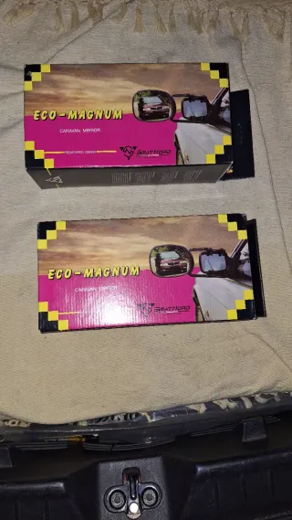 Par de espejos retrovisores para caravanas o autocaravanas. Diseñados para una fácil instalación. - Ajustables para una visión óptima. - Construcción robusta en plástico negro.