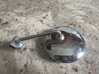 Espejo retrovisor cromado para motos estilo cafe racer o scrambler. Diseño circular. 8cm de diámetro, 15 cm largo total del brazo. - Montura metálica. - Brazo ajustable.