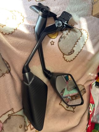 Par de espejos retrovisores para motocicleta con acabado imitación carbono. Rosca 8mm Sin usar Somos tienda en Madrid. Teléfono con whats app 687639249.