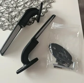 Par de espejos retrovisores negros para moto Kawasaki Ninja. Incluyen kit de montaje. - Diseño deportivo. - Acabado en negro mate. - Incluye tornillería y llave Allen.