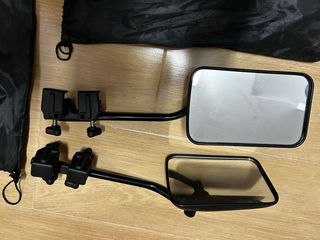 Par de espejos retrovisores para motocicleta. - Diseño angular. - Montura negra. - Ajustables.