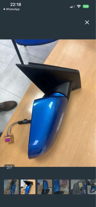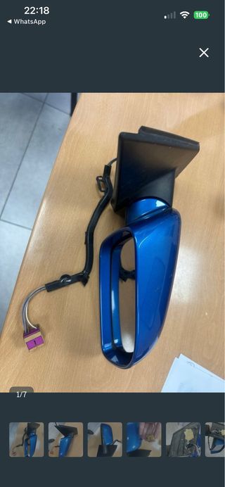 Espejo retrovisor exterior derecho para Volkswagen Polo del año 2003. El color es azul. - Carcasa de plástico. - Conector eléctrico incluido.