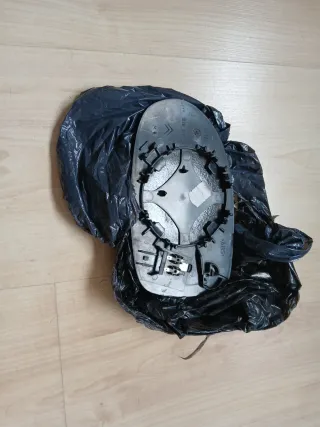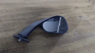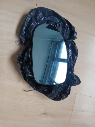 Espejo retrovisor para el lado del copiloto. Se encuentra envuelto en plástico negro protector. - Forma ovalada. - Cristal con ligero tinte azulado.