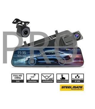 Dash camera integrada en el espejo retrovisor, con pantalla táctil de 10" incorporada. El espejo tiene la función de grabación de 2 canales y al mismo tiempo es un monitor de estacionamiento, que muestra el espacio detrás del vehículo en alta resolución al dar marcha atrás El espejo permite la imagen dividida - visualización simultánea de la imagen de la cámara delantera y trasera, se fija al espejo original mediante los clips.