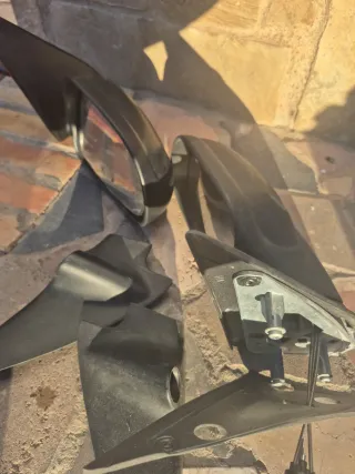 Conjunto de espejos retrovisores para coche. - Carcasa de plástico negro. - Mecanismo de ajuste visible.
